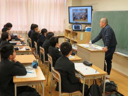 職業講話の新聞社、造園業、オーナーシェフの講座の様子です。それぞれの仕事の特徴や講師の方々自身の経験などのお話がありました。(田村真)