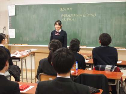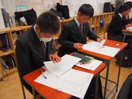 班長を支え、班行動の要となる副班長の教室では、担当の先生の話しの後、リーダーが成功を祈って決意を述べています。9月の修学旅行を成功させるためにも、今回の校外学習はぜひ気合を入れて頑張ってくださいね。
