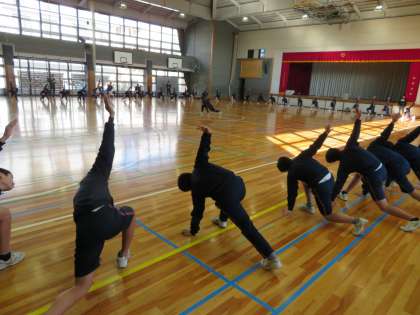 本日、本校ではスーパーアクティブスクールの研究発表が行われています。体育の授業や軽運動部の活動などを通して、生徒たちが運動することの興味を高めることを主題に取組を継続してきました。今日の3年生の授業でも、生徒たちは楽しんで体を動かしていました。(田村真)