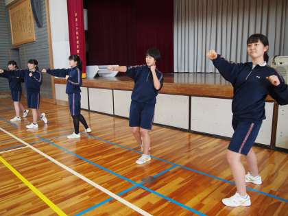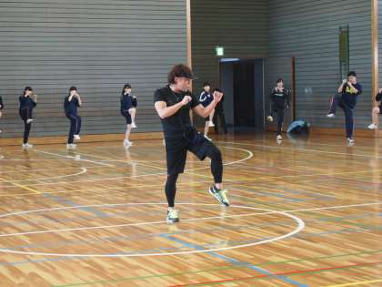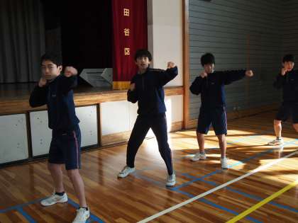 今日のスーパーアクティブスクールの研究発表会の講師はフィォトネスインストラクターの高橋真弘さん。もうフナキボ3年生は何度か授業でお世話になっている方です。音楽に乗ってみんなで体を動かしていると自然に時間がたっていきます。気がつくとかなりの汗をかいていました。