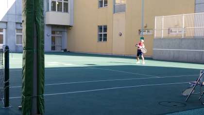 本日、硬式テニス部は男女それぞれ区内の公立学校による研修大会の個人戦に参加しています。