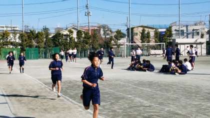 体育で女子は1000m走、男子は1500m走の測定を行っていたためでした。部活でもそれだけの距離を走る機会はあまりないので、みんな少し苦戦しているようです。しかし、走り終えた生徒や見学の生徒から応援の声が飛び交い、一生懸命走っている姿に「頑張って!」と一緒に応援したい気持ちになりました。風邪やインフルエンザの流行る今だからこそ、体力をつけて乗り切ってほしいと願っています。