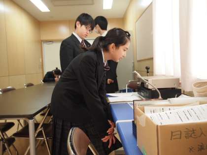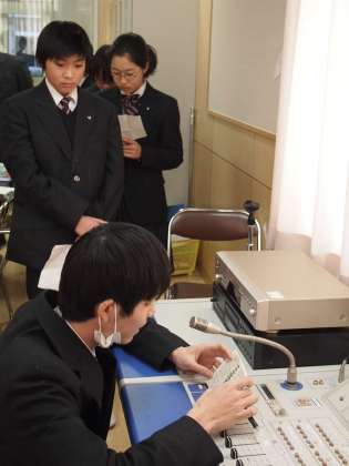 今朝、放送室では8時過ぎから生徒会朝礼の準備が行なわれていました。原稿を覚えてきたとはいえ、マイクの前ではまた別の緊張感が漂います。いつも以上に早口にならないよう心がけて生徒会から、そして各委員会からメッセージをつたえました。