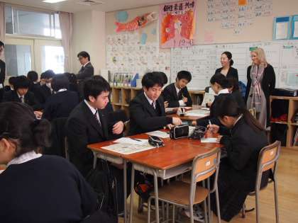本日の午前中、西オーストラリア政府首相夫人のSarah MaGowan様が船橋希望中学校を訪問されました。東京滞在中に世田谷区で読み書きを中心とした日本の教育を見学されたいとの希望があり、本校の道徳の授業を見学していただきました。