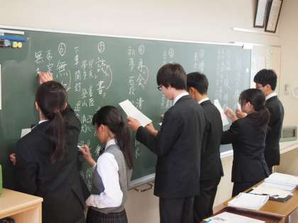 2年生国語は熟語について学習しています。「温暖」のように上と下の漢字が意味が似ているものや「増減」など上下で反対の意味を表すものなど様々なものがあります。大きく6種類に分かれる熟語の構成を各自でそして班で調べて発表する授業です。