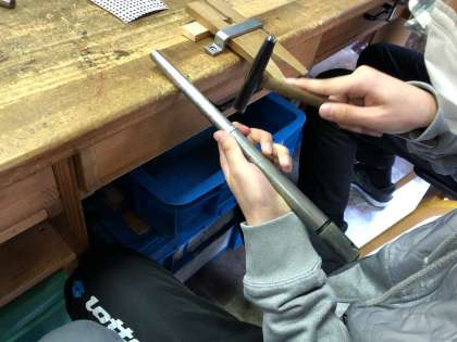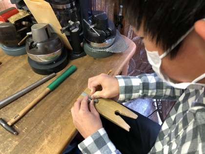 体験学習です。銀泉いづみけんでは、銀を使って指輪をつくります。