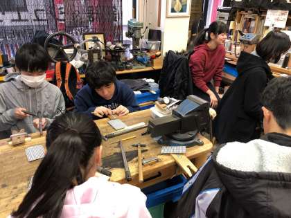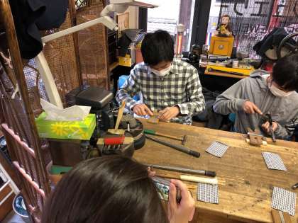 体験学習です。指輪を作るには、集中力と粘り強さが求められます。