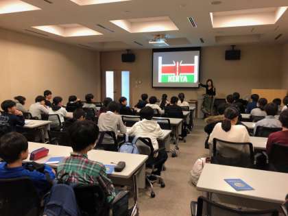 東横線遅延がありましたが、無事に全班揃ってガイドツアーが始まりました。最初はケニアについて学んでいます。(加藤)