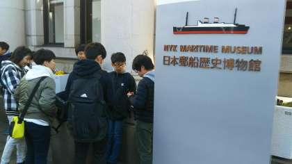 日本郵船歴史博物館の様子です。チェックを終え、ガイドツアーに行きました。(田村真)