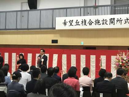 今、新しく完成した希望丘複合施設の開所式が行われています。この後、本校の生徒が参加するボッチャ大会が始まります。(副校長)