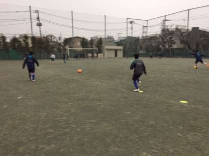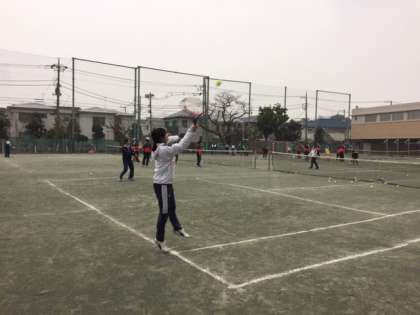 雪が降るなか、テニス部とサッカー部が練習しています。