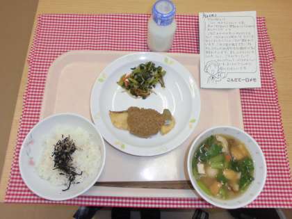 また、手作りしたふりかけにもひじきやじゃこ、ごまが入っていて、今日はカルシウムたっぷりメニューになりました。
