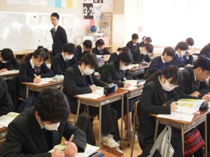 3年道徳の授業は、今中学生が抱えている悩みを見つめさせ、自分が何をすべきなのかを考える時間です。「手紙〜拝啓 15の君へ」の歌詞を教材に共感できる部分を探しだし、授業のまとめとして未来の自分へ手紙を書きました。あと、1ヶ月後に控えた卒業を前に7期生は自分を振り返っています。