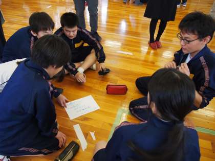5校時は前の時間に作った短歌をもとにグループで創作劇を作ってみるという授業です。「指定された音楽をどこにいれるか」「全員が一言はしゃべるセリフをどうするか」「短歌をいつ紹介するか」などグループ全員で限られた時間内に話し合いで決める、という究極のコミュニケーション力が試されます。
