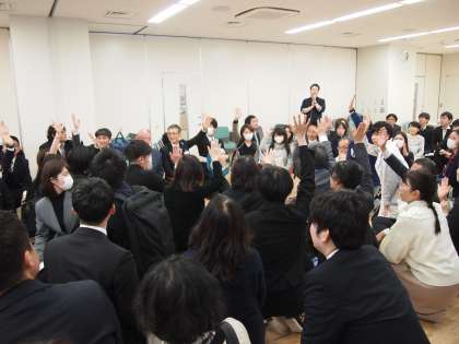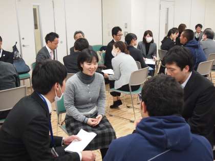 授業後は、見学した小中学校の教員がコミュニケーション力を使う教育プログラムを体験しました。「じゃんけんをしてあいこを5回だしたら座って」「同じ誕生日の人を早く探して」など今までの研修会とは違う企画に先生方も積極的に動き回っていました。