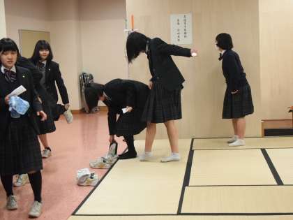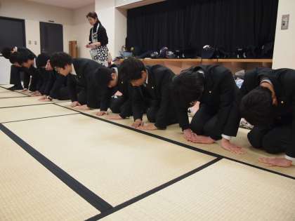 茶道体験は、礼儀作法から。「畳のどこに正座をするか」から「お菓子の持ち方」まで細かい礼儀作法のほんの一部を体験します。苦労してたどり着いた抹茶はお美味しくいただきました。ただ、その後立ち上がってみると足のしびれが想像以上だった人も。