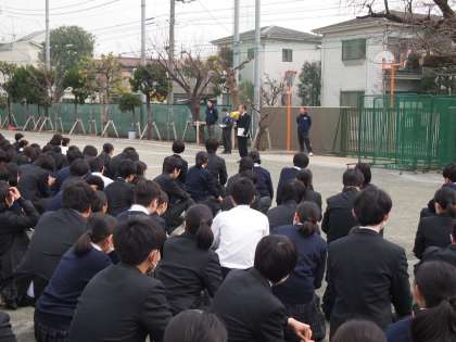 今日は今年度最後の避難訓練です。昼休みに地震が発声した、という想定で「その場で姿勢を低くし(DROP)、頭を守る動作(COVER)をして動かない(HOLD ON)」というシュミレーションをする訓練をしました。今各地で行われているシェイクアウト訓練で欠かせないポイントです。災害はいつどこで発生するかわからない。だからこそ「今この場で地震が来たら?」を常に考え行動できる大切さを学んで欲しいと思います。