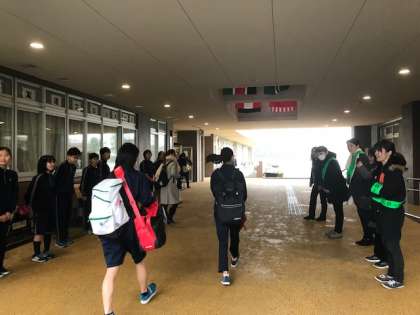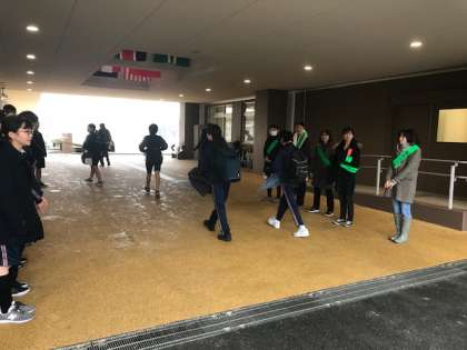 本日7日から3日間、2年6組保護者様による登校時あいさつ運動が行われています。冷たい雨が降る中、朝早くから、ご協力ありがとうございます。生徒会役員と2年6組の生徒たちも参加して、爽やかなあいさつが交わされています。(副校長)
