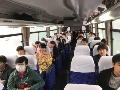 バスの中で「美女と野獣」を鑑賞して、ディズニーの予習をしています。これでディズニーについてはバッチリ!?(伊井)