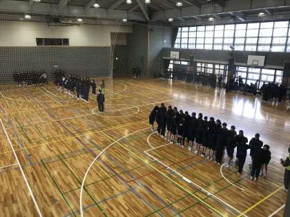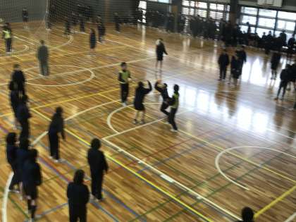 1年生の球技大会が始まりました。あいにくの雨のため、男女合同で体育館にてドッチボールを行なっています。(室田)
