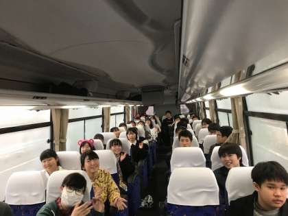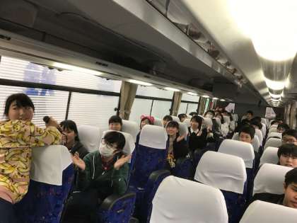 集合時間に間に合い、無事に全員乗車することができました。帰りのバス内では、カラオケ大会が行われています。曲はディズニーとは関係ないのですが、みんな上手に歌っています。(伊井)