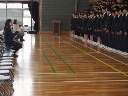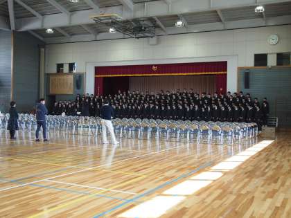 7期生は卒業式の完成度を高めるための努力をしています。そのうちのひとつ、式の中での合唱です。「これが7期生の合唱です!」を披露する最後の場面になるので、気合の入り方が違います。練習といえども体育館に入った瞬間、緊張感に圧倒されました。