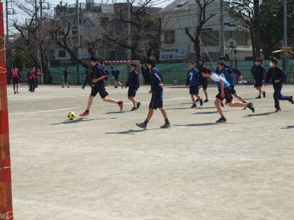 今日は職員室でも「目が痛い!」と瞼を腫らし、ティッシュを手放せない先生がいるほど花粉の飛散量が多い日です。しかし、校庭では体育の授業で2年生がサッカーに夢中です。そしてみな生き生きしています。