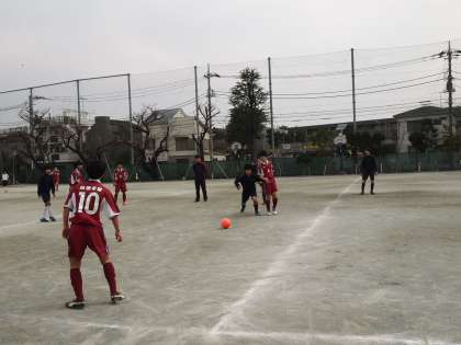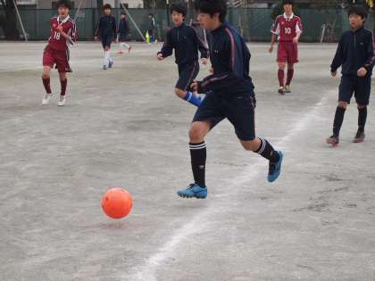 今日はサッカー部の‘お別れ試合’です。来週卒業式を迎える先輩との親善試合。とはいうものの、相手が3年生とはいえ、現役の強さを先輩に見せ、安心して卒業式もらえるよう全力でプレーをしているフナキボの在校生たちです。