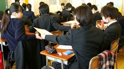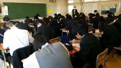 本日の1時間目、2年生は全クラスで一人ひとりのクラスメイトへ宛てたメッセージを記入しました。