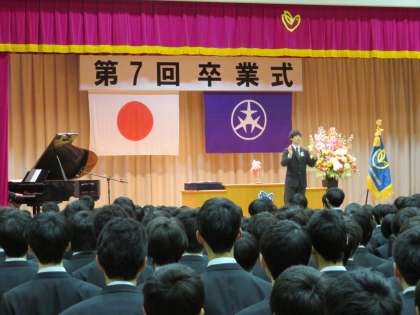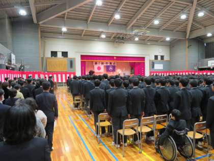 3年生と歌う最後の校歌、指揮と伴奏の生徒も今まで本当にお疲れ様でした。(田村真)