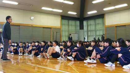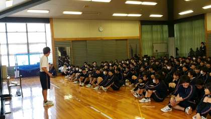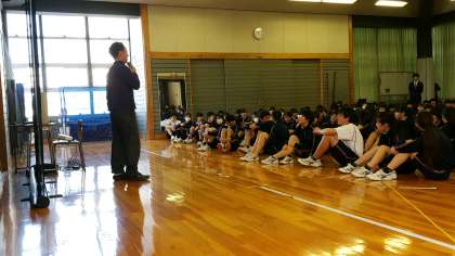 学年みんなで集まる機会もこれが最後。まずレク大会の表彰、そして学年委員長の話、そして学年の教員による話がありました。