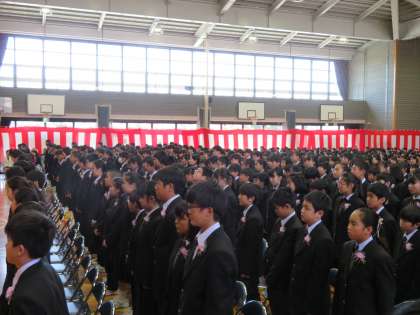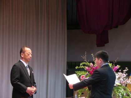 新入生の誓いのことばの様子です。代表生徒の力強い言葉に、これからの10期生の飛躍が期待できます。(田村)