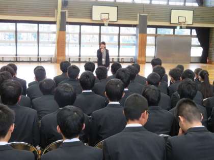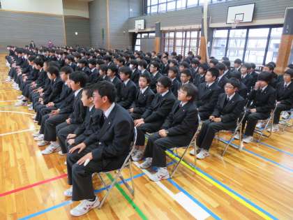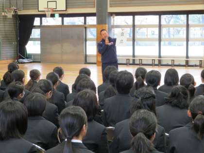 本日4校時、体育館で2年生の学年集会が行われました。新たに、学年に所属された先生、昨年度から引き続き担当する先生それぞれからあたたかいことばをいただきました。(田村)