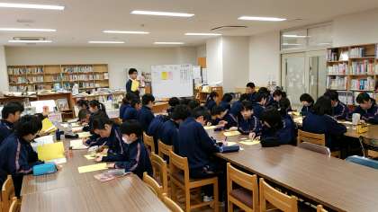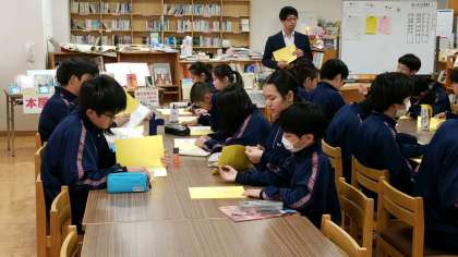船橋希望中学校の図書室では、新入生に図書室利用の方法について司書の先生が教えてくださる「図書館オリエンテーション」を実施しています。