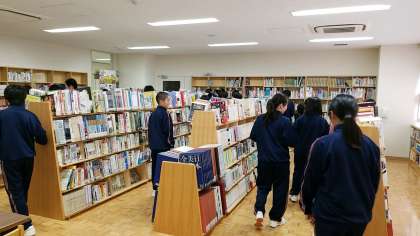 船橋希望中学校の図書室は蔵書の数も多く、きれいに分類してあり使いやすくなっています。これからの3年間、たくさん図書室を読書や学習に利用してもらいたいと思います。