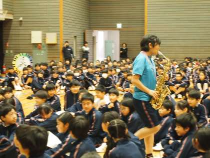 そして最後は吹奏楽部です。今日の独奏は観客の中に分け入っていく、という新しいジャンルを開拓しました。