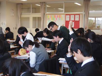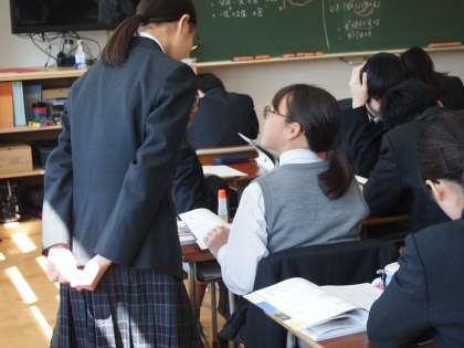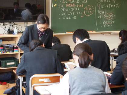 新年度の正式な時間割での授業が今日から始まりました。8期生のフロアーに行くと早くも3年生としての真剣なやる気が感じられます。数学では多項式の計算を扱っています。早くできた人が先生の補助として解答に間違いがないかを見てあげています。