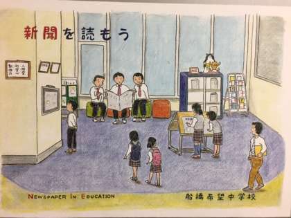 本校NIEコーナーをモチーフにしたイラストを、主事さんが描いてくださいました!(大居)