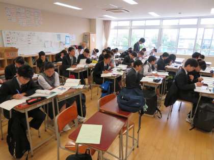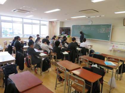 3年生数学の授業の様子です。少人数クラスでの授業ですが、どのクラスも熱心に取り組んでいます。(田村)