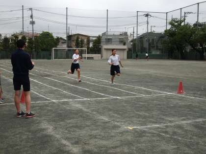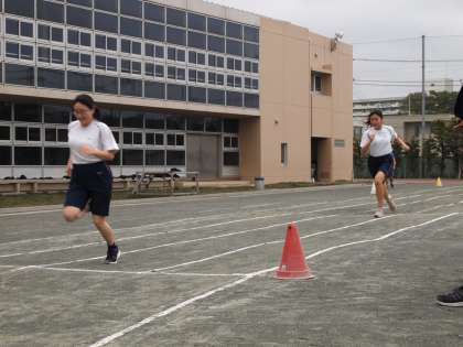 1年生が雑草の観察をしている時、校庭では3年生が運動会へ向け、短距離走のタイム計測をしています。ゴールするまで力を抜くことなく走りきれるか!フナキボ運動会を引っ張る8期生も気合が入ります。