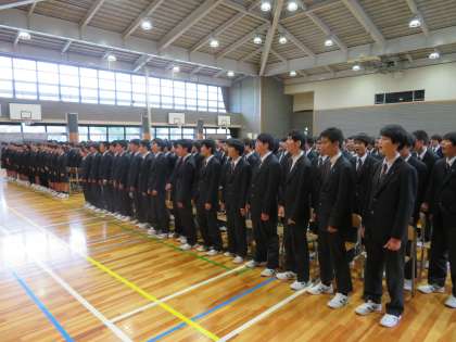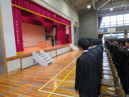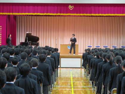 離任式前の生徒たちの歌練習の様子です。離任された先生方への感謝の気持ちを伝えるため、気持ちと姿勢を整えています。(田村)