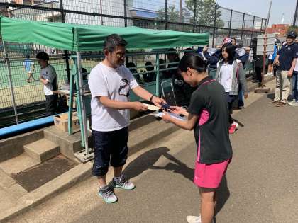 女子シングルスで第5位に入賞しました。 都大会進出おめでとう。