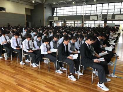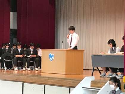 一人一人が船橋希望中学校の生徒であることをしっかりと自覚し、各委員会の委員長の話を真剣に聞いていました。