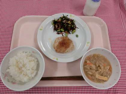 「豆腐ハンバーグ和風ソース」のハンバーグには、豆腐とおからを使っています。大根おろしと玉ねぎの和風ソースでさっぱりと食べられるようにしました。
