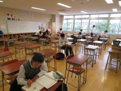 明日の中間考査に向けて、自習教室などで勉強を頑張っている様子です。今年度初めての定期考査、よいスタートをきれるように家庭でも勉強に取り組んで下さい。(田村)