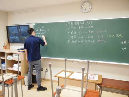 受験の年となる8期生はもちろん、7期生も早朝から試験前最後のチェックに余念がありません。担任の先生も、その頑張りを応援すべくメッセージを書いています。