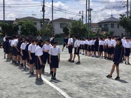 整列、体操、練習の指示を全て3年生の体育委員が行いました。先輩たちが残してくれた伝統を見事に引き継いでいます。(大居)