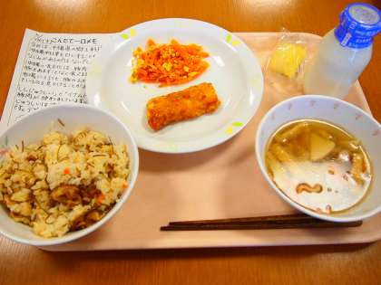 郷土料理給食の第一弾は、沖縄料理です。豚肉を使った「ししじゅうしい」と「イナムドゥチ」舌をかみそうな料理名ですが、食べてみると舌鼓を打つこと間違いなし、の給食でした。