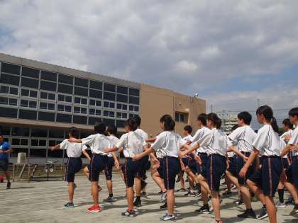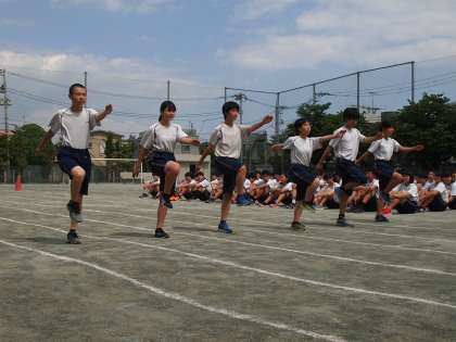 「行進は、腕と足の角度が大切」と体育委員のお手本を見た後、ひたすら練習あるのみ。これも気持ちが揃うと、見ている観客にはすぐにわかります。