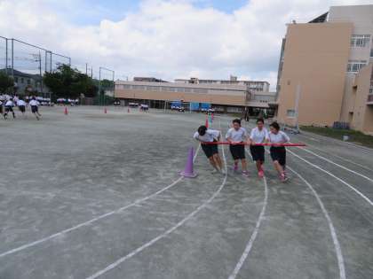 2年生の学年練習の後半は、学年種目のハリケーン&アルプスリレーの練習を行いました。走順や競技の内容を探り探りやっていましたが、どのクラスも体育委員を中心にまとまって練習ができていました。(田村)